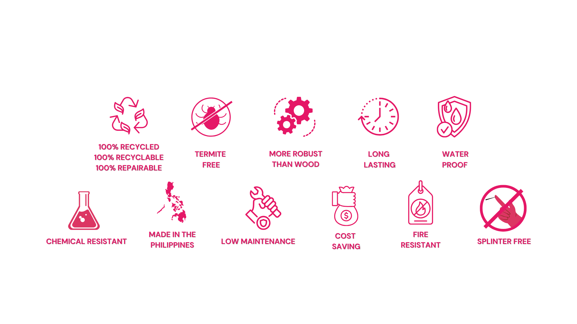 The Circular Pallet is built from our eco-boards, produced entirely from 100% recycled plastic