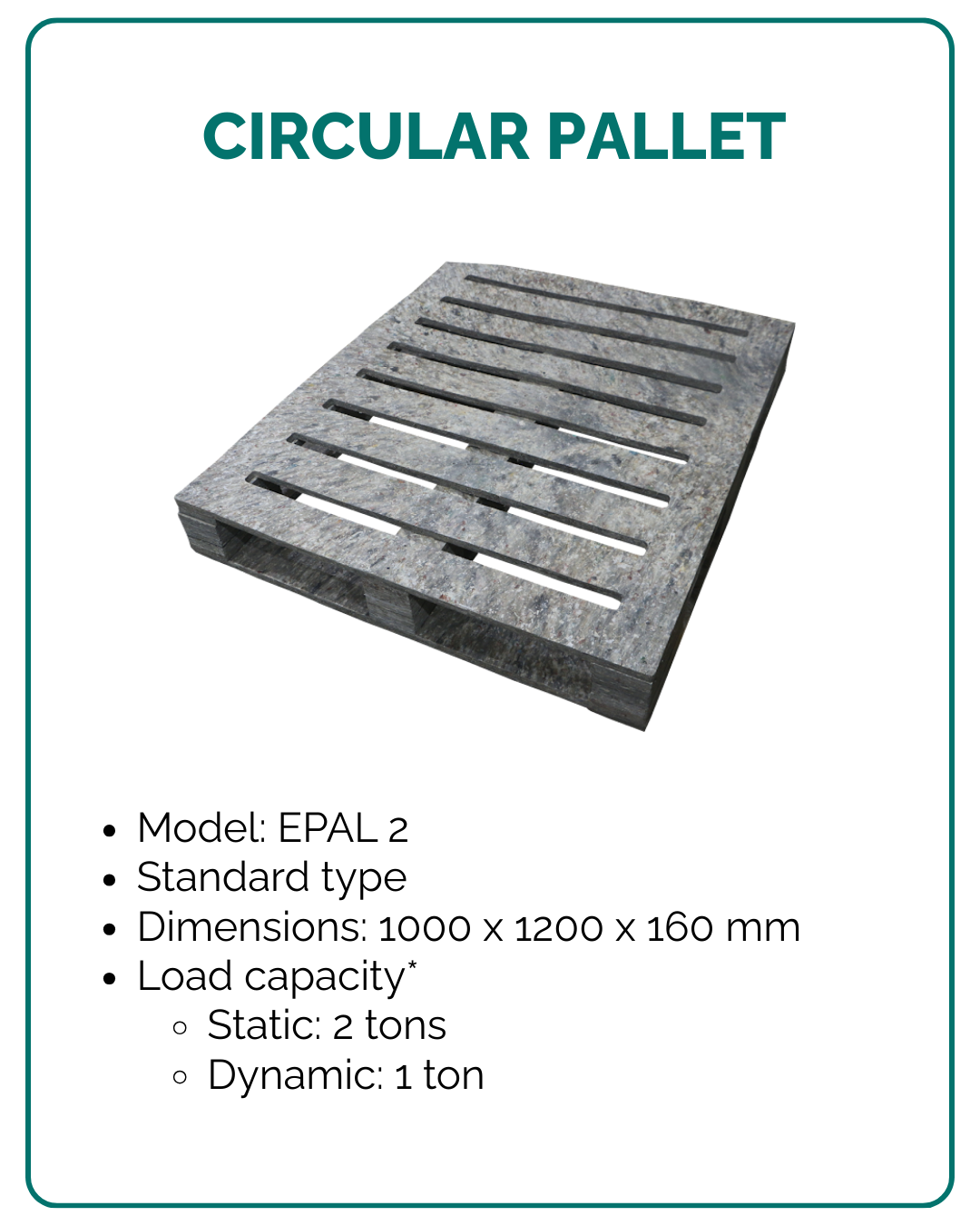 The pallet is fully recyclable, thanks to the 100% recycled materials it’s made from.